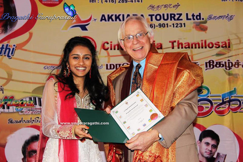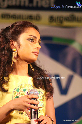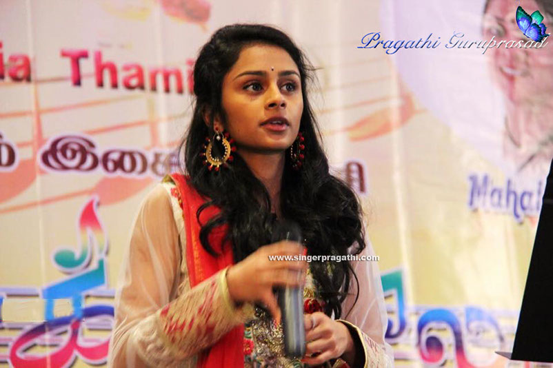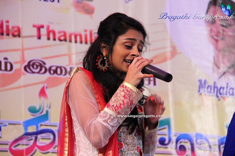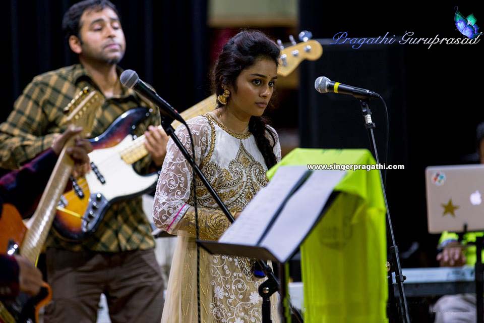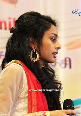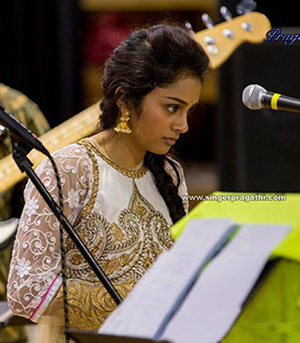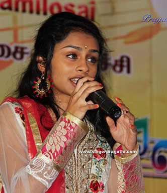 Pragathi Guruprasad is an Indian playback singer from Fremont, California. She was the runner-up in the third season of the reality-based singing competition Airtel Super Singer Junior. She had several years of training in Carnatic music and Western music. Her fame continues to grow after she was the runner-up in Super Singer Junior 3. She has sung for music composers such as Anirudh Ravichander and G. V. Prakash Kumar.