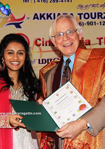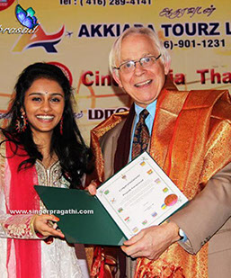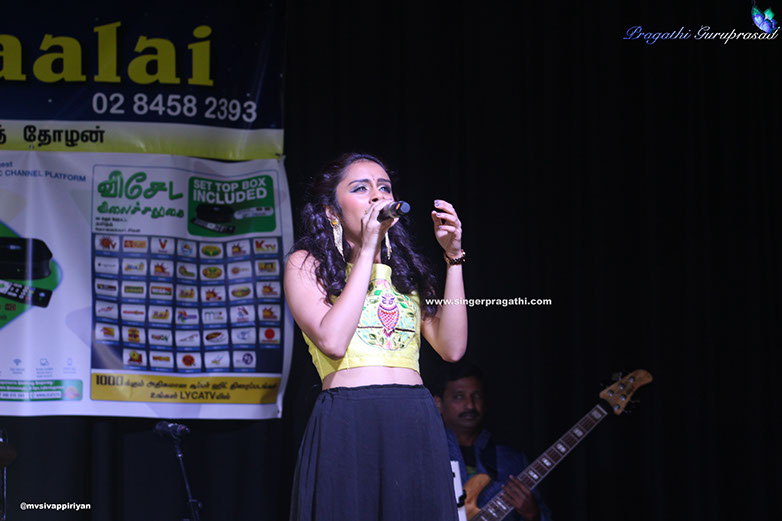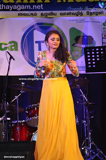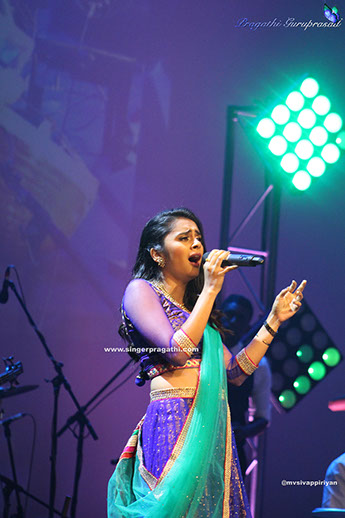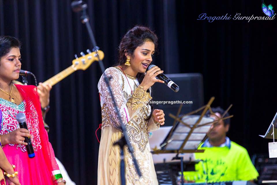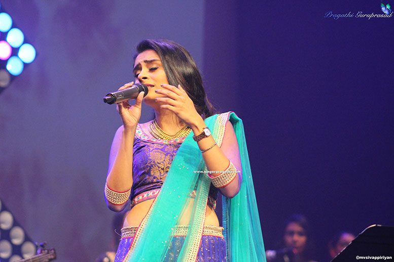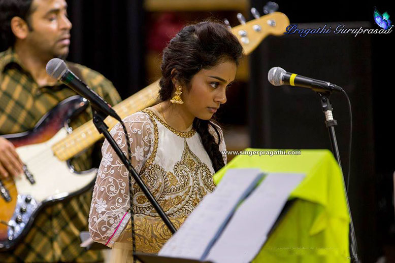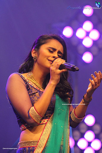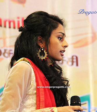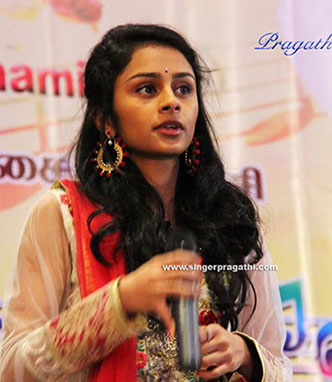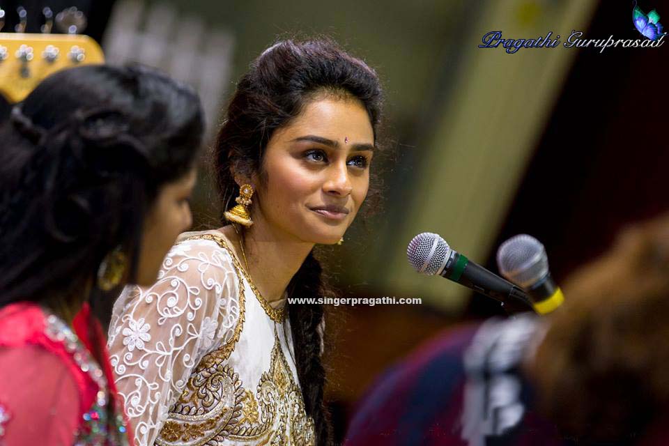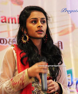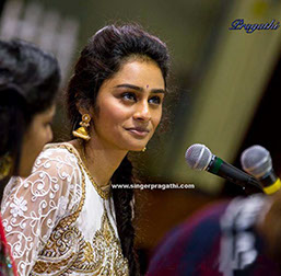 Pragathi Guruprasad is an Indian playback singer from Fremont, California. She was the runner-up in the third season of the reality-based singing competition Airtel Super Singer Junior. She had several years of training in Carnatic music and Western music. Her fame continues to grow after she was the runner-up in Super Singer Junior 3. She has sung for music composers such as Anirudh Ravichander and G. V. Prakash Kumar.